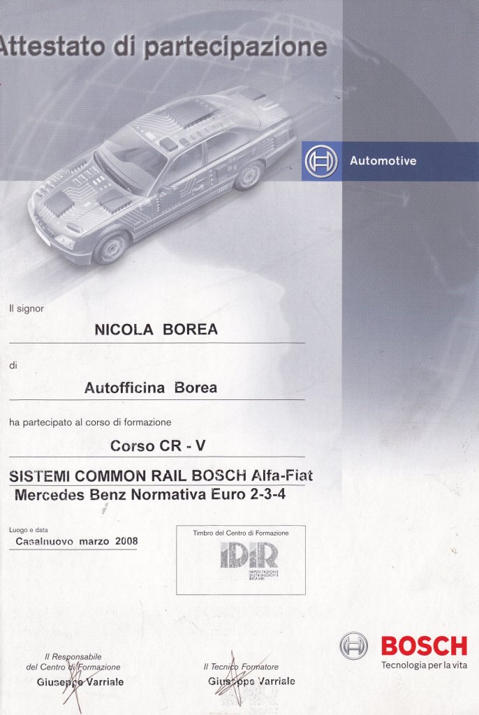 | 2008 | SISTEMI COMMON RAIL BOSCH Alfa-Fiat-Mercedes Benz Normativa Euro 2-3-4 |