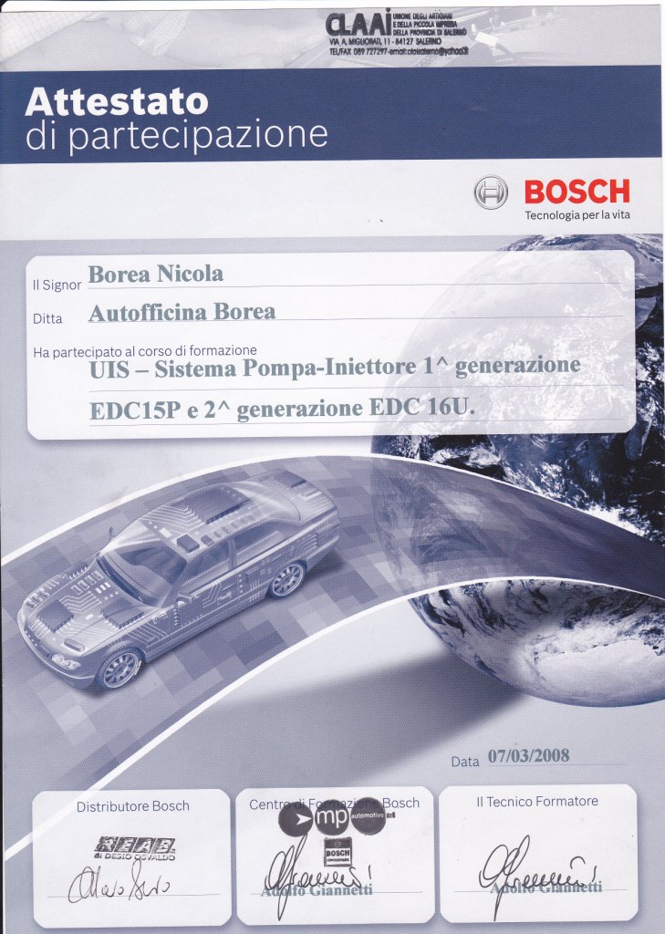 | 2008 | SISTEMI COMMON RAIL BOSCH Alfa-Fiat-Mercedes Benz Normativa Euro 2-3-4 |